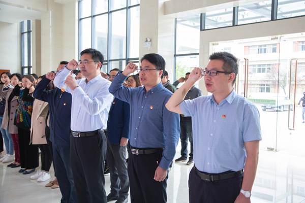 综合部门第一党总支各支部组织全体党员开展“四重四亮”主题党日活动。部分党员干部重读自己的入党志愿书,追忆了入党时的思想激情和奋斗追求,与会党员郑重举起右拳,面对党旗,庄严宣誓,回顾入党时的那份初心和庄严承诺,所有党员同志还结合自身成长经历和岗位职责,分别讲述自己的“初心是什么、使命干什么、奋斗比什么”,表达自己坚定信念和为共产主义奋斗终身的决心。