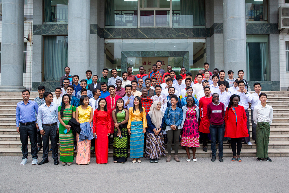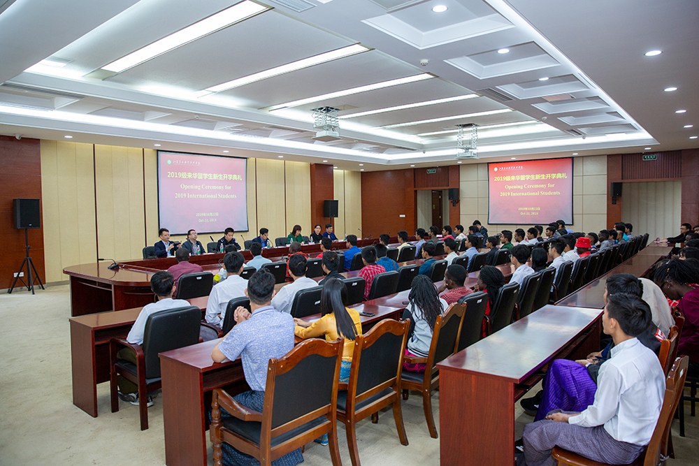 开学典礼上,2018级孟加拉国留学生陶东、2019级缅甸留学生赵生约分别代表在校生和新生发言。