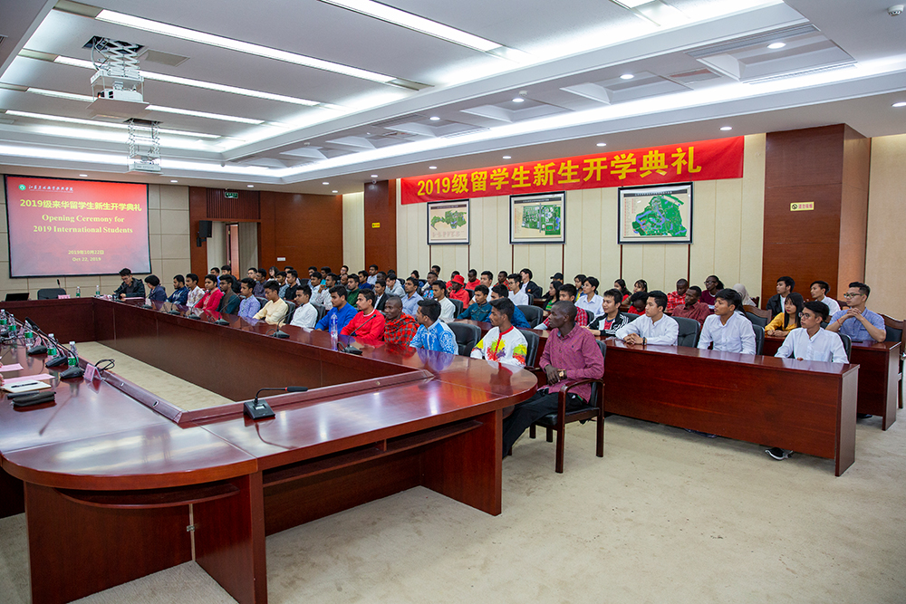 巫建华院长代表学院对2019级65名新同学表示热烈的欢迎,他要求全体新生要尽快适应学校生活,遵守中国的法律法规和学院的校纪校规,尊重中国的风俗习惯;要合理安排时间,充分利用学校的各种学习资源,积极参加各项竞赛和文化交流活动,提升学习的兴趣和动力;要学好中文,多了解中国文化,做“一带一路”文化交流的使者。希望大家尽快融入江苏农林大家庭,不负韶华,不懈努力,为增进中外友谊助力,为美好幸福未来奠基。