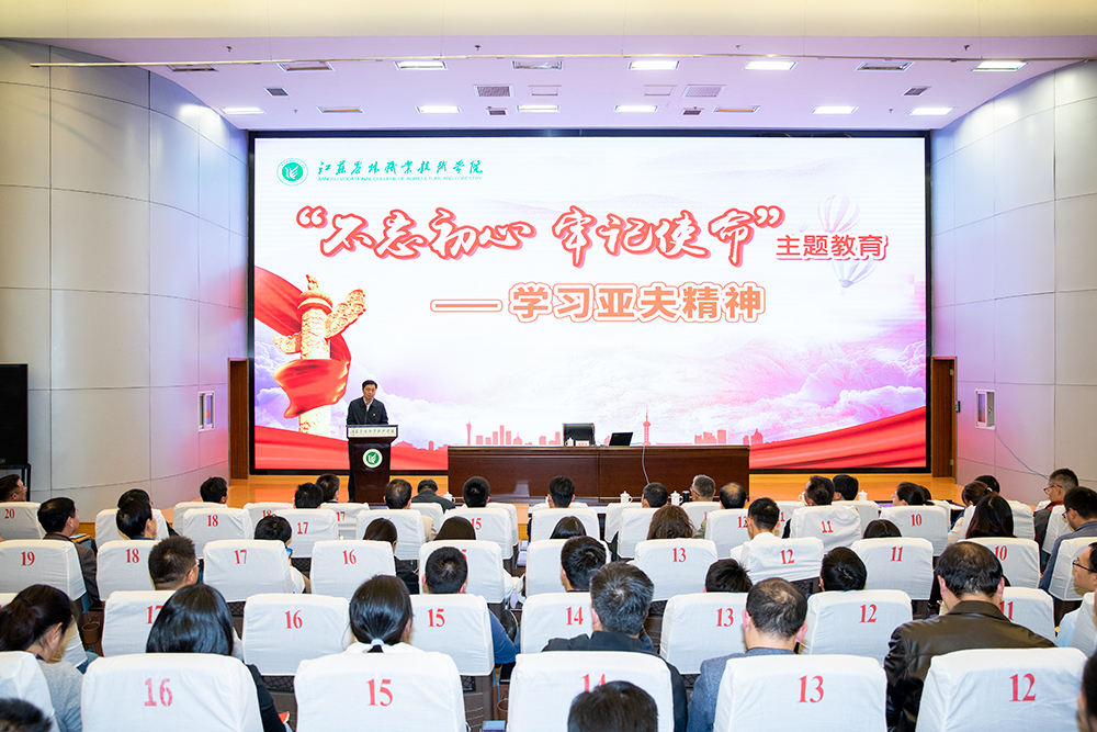 10月30日下午,学院举办“不忘初心、牢记使命”主题教育学习亚夫精神专题报告会,“最美奋斗者”、党的十四大代表赵亚夫来到77779193永利集团,以自己的奋斗成长历程鼓励当代学子继续奋斗,扎根基层,为现代农业做贡献。全校师生代表350余人参加了报告会, 报告会由学院党委书记俞卫东主持,主题教育指导组史代章书记出席报告会。