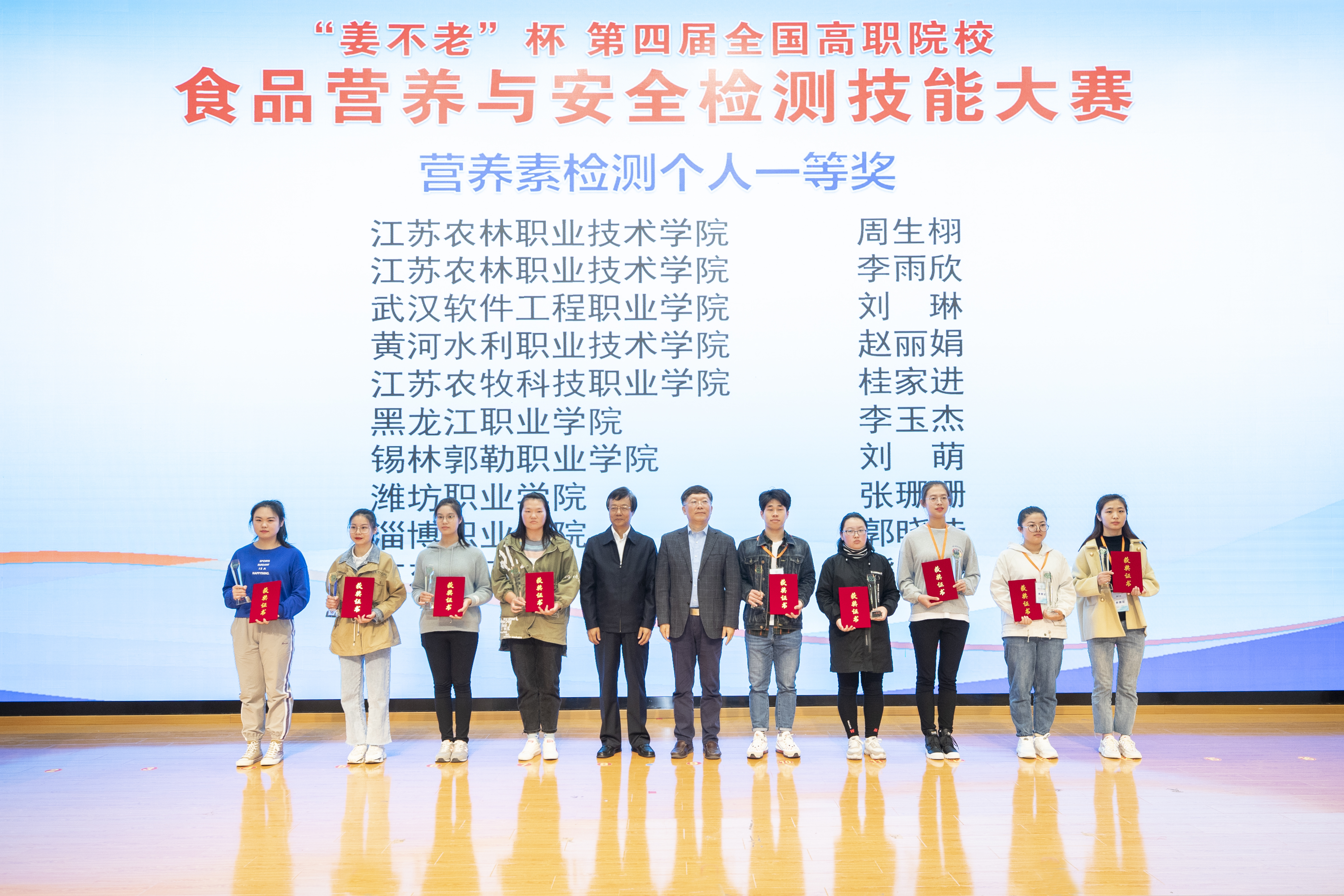 11月14-17日,由全国食品工业职业教育教学指导委员主办的“姜不老”杯第四届全国高职院校食品营养与安全检测技能大赛在永利官网举行。大赛闭幕式在永利官网图书馆报告厅举行,中国轻工业联合会副会长石维忱、江苏省农业农村厅科教处处长姜雪忠、学院党委副书记简祖平等领导出席闭幕式并为获奖选手颁发了奖杯和获奖证书。