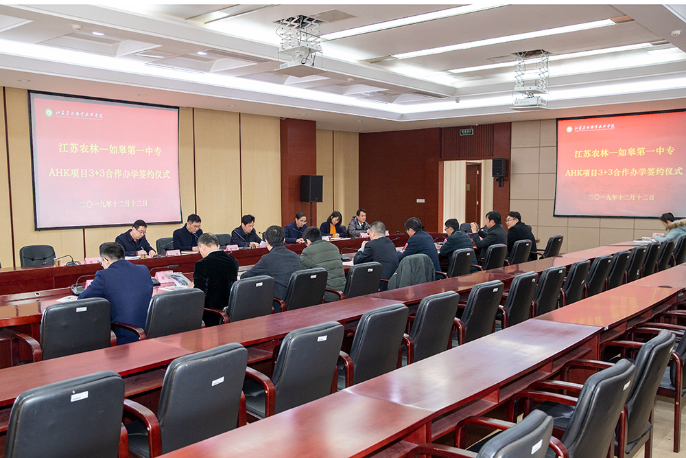 12月12日上午,永利官网与江苏省如皋第一中等专业学校、江苏凤凰职教“中德AHK项目3+3合作办学”签约仪式在永利官网举行。学院党委副书记、院长巫建华出席签约仪式并致辞,党委委员、副院长曹仁勇代表学校签约。江苏省如皋第一中等专业学校曹江泉校长、江苏凤凰职教徐斌副总经理、教务处、学工处、机电工程学院等相关部门负责人参加了签约仪式。