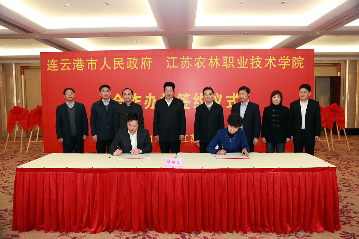 巫建华院长与连云港市政府吴海云副市长签署合作办学框架协议。根据协议,双方将在农业技术人才培训、技术开发、推广和科技成果转化、现代农业园区建设等方面全面开展合作。