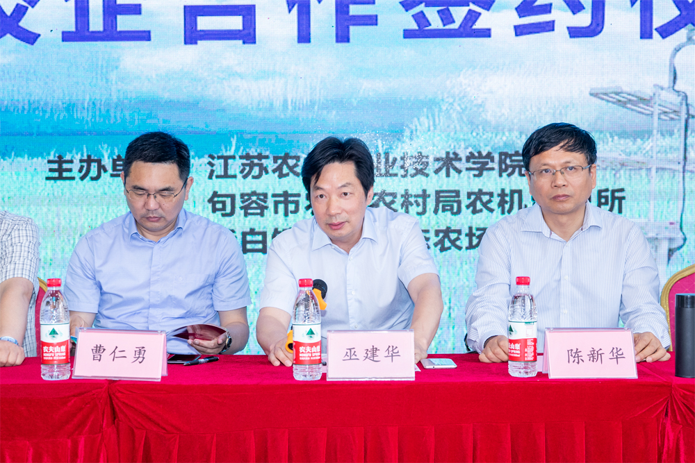 6月5日上午,学院党委副书记、院长巫建华,党委委员、副院长曹仁勇一行赴句容市后白镇参加“三夏”智能农机装备应用现场观摩会,并出席了与句容市农业农村局、江苏好味稻生态科技有限公司共同举办的“政校企合作”签约仪式。