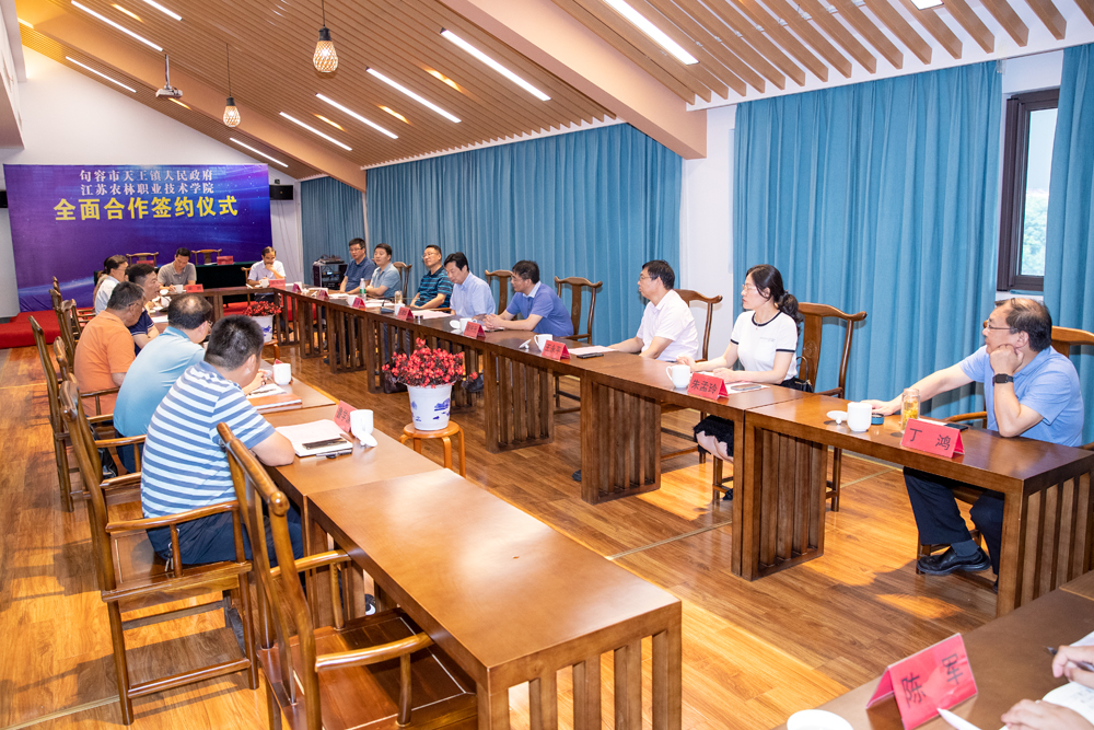 7月3日下午,永利官网在句容市天王镇与天王镇人民政府签订了全面合作协议,学院党委副书记、院长巫建华,党委委员、副院长周兴元,时代楷模赵亚夫,句容市委组织部副部长方春喜等出席签约仪式,句容市相关部门和学院相关部门负责同志参加了签约仪式。