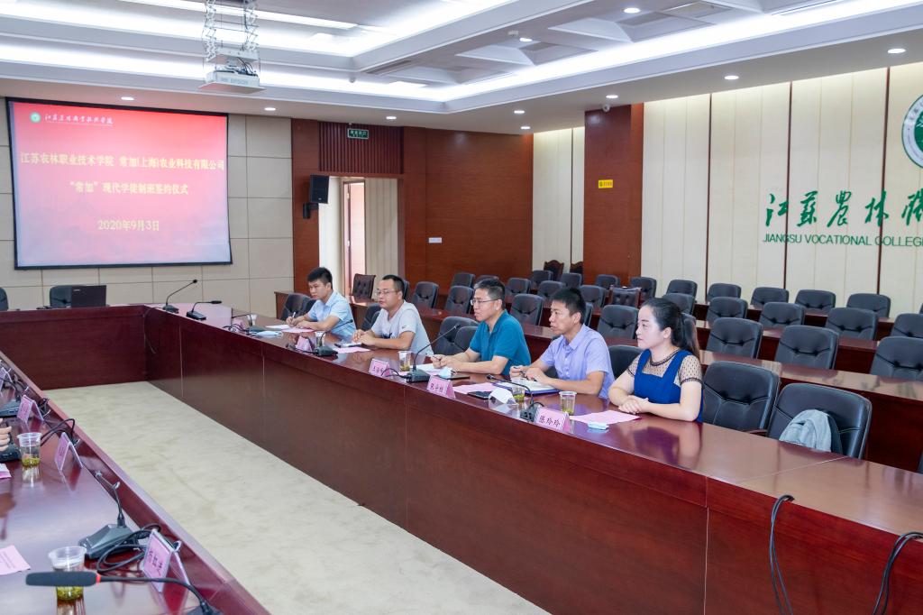 9月3日上午,在综合楼九楼会议室,举行“常加”现代学徒制班合作协议签字仪式。学院党委委员、副院长曹仁勇,常加(上海)农业科技有限公司总经理王海峰博士,教务处、学生工作处和畜牧兽医学院负责人参加了签约仪式。