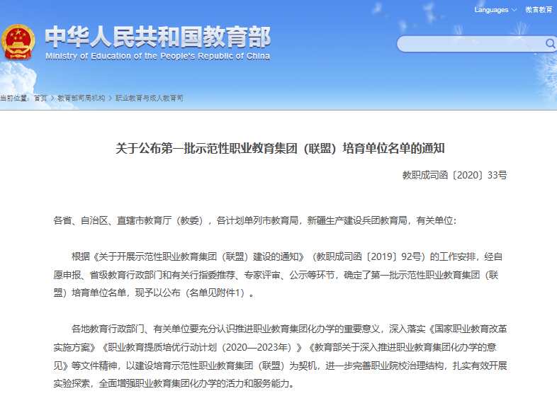 10月15日,教育部公布首批全国示范性职教集团培育单位名单。由永利官网和袁隆平农业高科技股份有限公司牵头成立的中国现代农业职业教育集团被确定为首批示范性职教集团。