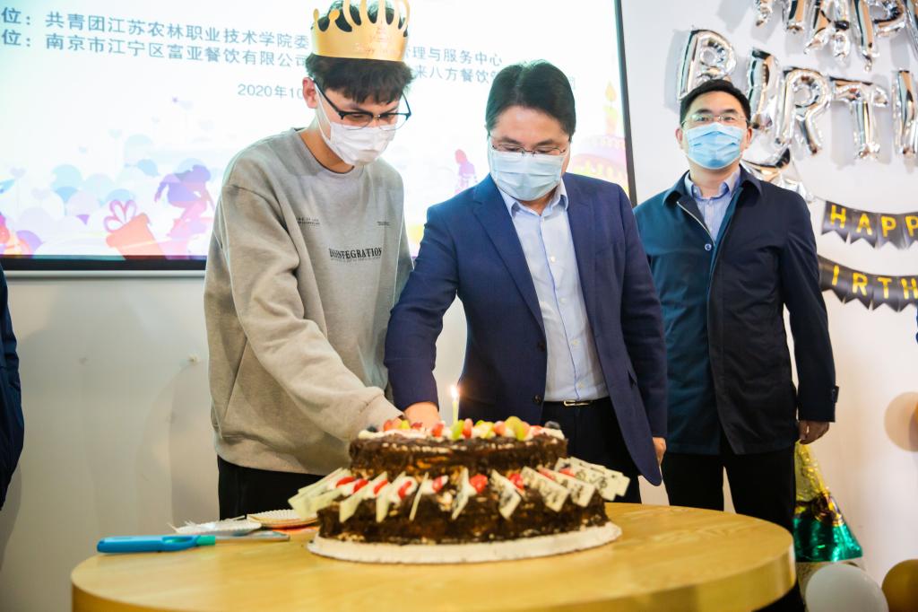 简祖平希望新生们在江苏农林的三年里,培养更好的品格、发现更好的自己、掌握更好的方法、成就更精彩的自己。参加生日会的新生们头戴生日帽,一起围着蛋糕,高声唱起生日赞歌,许下生日愿望。生日会上,大家一起分享蛋糕,互送祝福、一起合影记录下美好的瞬间。活动由学院团委、后勤管理与服务中心负责承办。