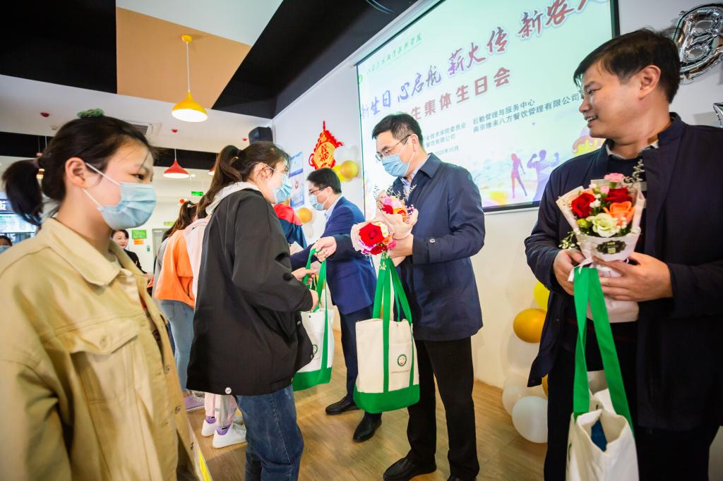 10月18日下午,“新生日,心启航,薪火传,新农人”新生集体生日会在茅山校区第5食堂举行,共同为10月17、18日两天出生的25位新生庆祝生日。学院党委副书记、院长简祖平,党委委员、副院长曹仁勇,学生工作处、团委、后勤管理与服务中心、茅山校区管委会等部门负责同志共同参加了生日会。