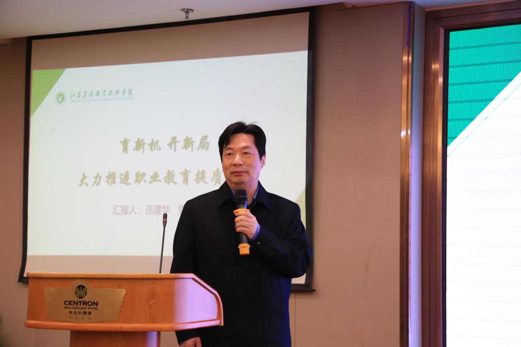 巫建华围绕职业教育从大有可为到大有作为、提质培优三年行动计划十大任务、中国特色高水平高职院校建设实践等三个方面,介绍了学院在深化农业职业教育改革、落实体质培优行动计划、推进高水平现代农业专业群集群建设等方面的实践经验。巫建华表示,学院将继续以服务“三农”宗旨,不断强化党建引领和党建与业务深度融合,聚力科技创新,推动国际交流合作,加强学生职业道德、职业素养、工匠精神和劳模精神的培养,为建设有国际影响力的中国特色高水平高职学校贡献力量。