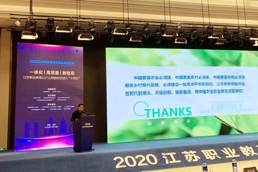 12月19日,2020年江苏职业教育高质量发展论坛在常州举行。学院党委副书记、院长简祖平参加会议并应邀作“助力乡村振兴 打造农业职业教育领军学校”专题报告。