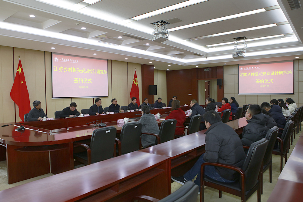 会上,双方签订了江苏乡村振兴规划设计研究院共建协议。学院相关部门主要负责人参加了活动。