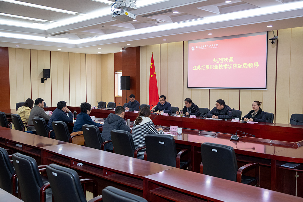 3月17日,江苏经贸职业技术学院纪委书记刘晓宾以及纪委办、执纪审查室工作人员一行6人前来永利官网交流考察。学院党委委员、纪委书记周国义,纪委办、执纪审查室负责人参会。