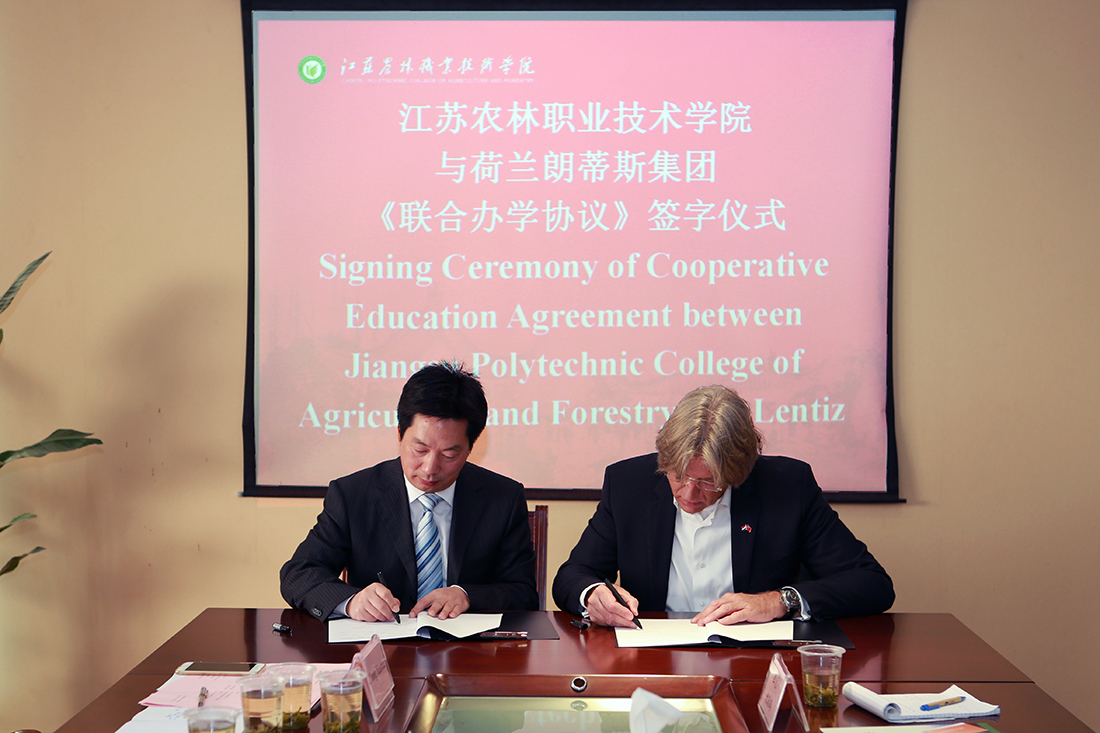 11月4日,荷兰职业教育代表团一行4人访问永利官网,并与永利官网签署了联合办学协议。荷兰诺德温学院国际合作项目主管海玲•安德林加(Heleen Andringa)女士,荷兰朗蒂斯(Lentiz)集团国际交流负责人弗里茨•范康普(Frits Veltkamp)先生,Aeres Groep学院代表里克•米勒玛(Rik Meerema),永利官网院长巫建华,副院长曹仁勇及相关部门负责同志参加了签约仪式。 巫建华院长对荷兰职教集团的到来表示热烈欢迎,并简单介绍了永利官网的基本情况。他希望通过此次合作,既能够使双方的师生受益,还能带动周边区域农场主的发展和培养。海玲•安德林加女士就荷兰诺德温学院的办学特色和教学理念进行了详细的介绍,希望双方能够建立长远的合作关系,在更广的领域开展合作。里茨•范康普先生对合作项目进行了介绍,并代表荷兰Lentiz教育集团与永利官网签署了联合办学协议,共同开展BTEC课程联合办学项目。
