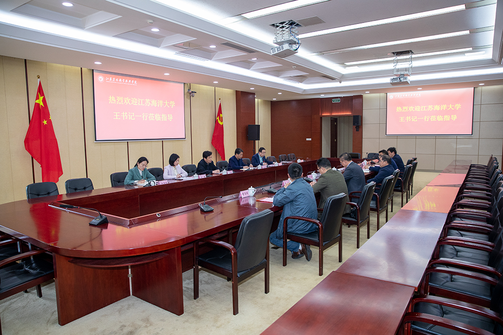 巫建华向江苏海洋大学介绍了永利官网的办学概况、发展建设历程及“4+0”人才培养等相关情况。会上,双方就“4+0”合作项目进行了研讨。