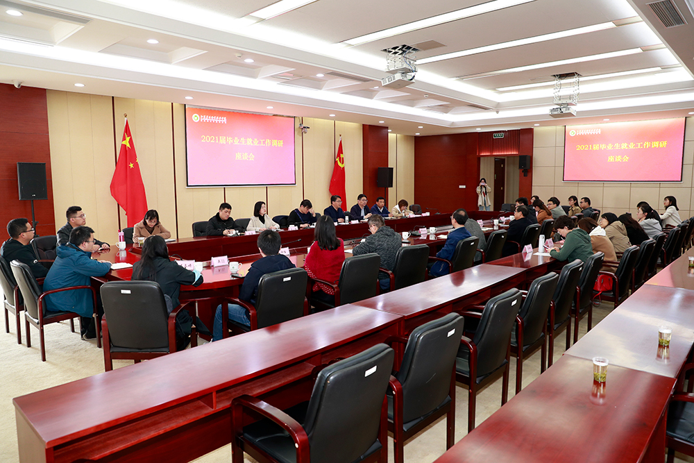 胡建平与参会领导及一线辅导员们开展了就业工作交流,分析了国家、省2021年大学生就业的大环境和新形势,要求学院的就业工作推进要“快”,举措要“实”,指导服务要“细”,数据上报要“准”。