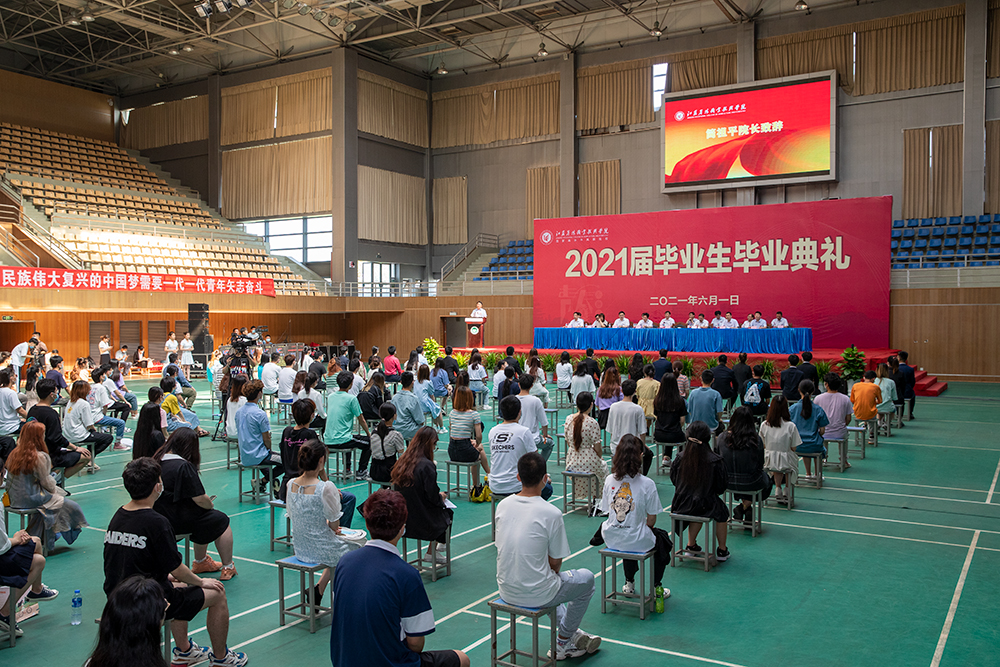 6月1日上午,2021届毕业典礼在一曲《星辰大海》中拉开了帷幕。学院领导出席了毕业典礼,毕业典礼由学院党委书记巫建华主持。800余名毕业生代表、各二级学院主要负责人、相关职能部门负责人、教师代表和在校生代表参加了毕业典礼,未参加毕业典礼3100余名毕业生线上观看了毕业典礼直播。