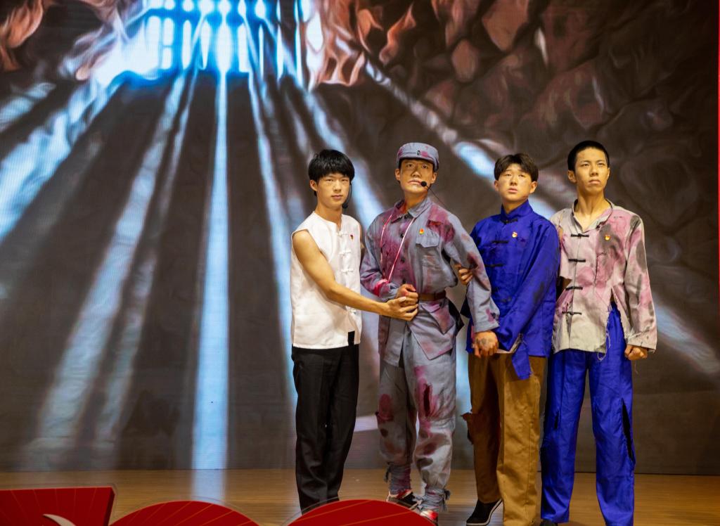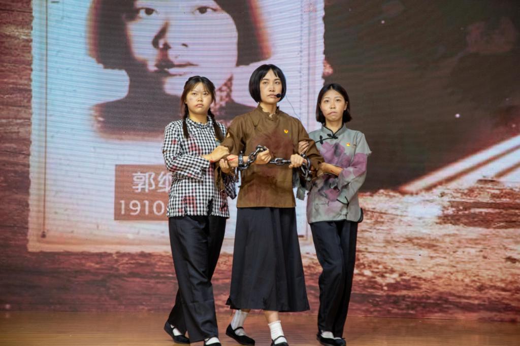 学院结合大赛主题,制定实施方案,依托句容红色资源,带领广大团员青年重走红色足迹、追溯红色记忆、访谈红色人物、挖掘红色故事、体悟红色文化,在研学中感受党的红色精神伟力。永利官网团队根据郭纲琳、巫恒通等句容籍烈士的真实事迹,运用艺术的手法进行创作编排,最终以音诗画的方式呈现研学成果——《在纪念碑前》。永利官网的展演引发了现场师生的强烈共鸣。