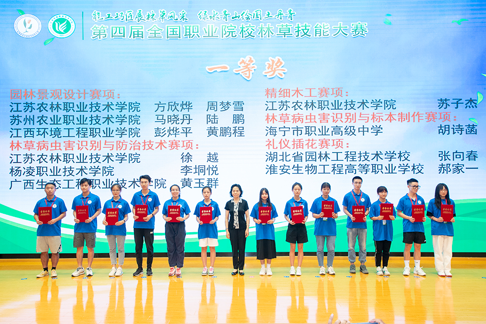 本届大赛共设有5个比赛项目,高职组设园林景观设计、林草病虫害识别与防治技术、精细木工3个赛项,中职组设礼仪插花、林草病虫害识别与标本制作2个赛项。来自全国54所职业院校的137名选手参加了比赛。经过评比,最终决出一等奖10名、二等奖21名、三等奖53名、优秀奖20名、优秀指导教师奖14名,优秀组织奖22个。大赛承办单位77779193永利集团荣获特别贡献奖。