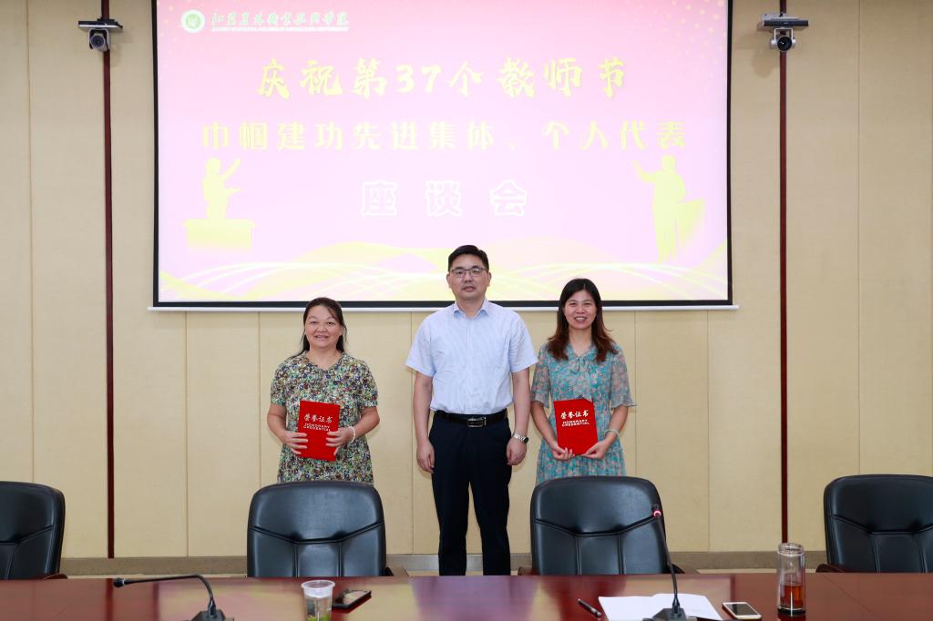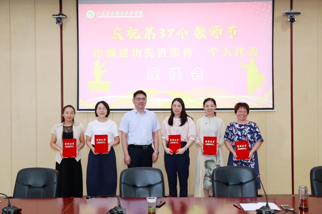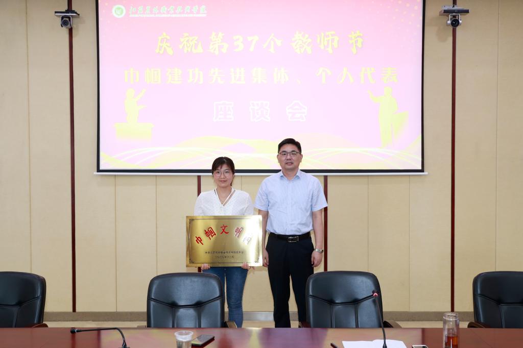 9月8日下午,学院妇联在综合楼九楼会议室召开庆祝第37个教师节“巾帼建功”表彰暨座谈会。学院党委副书记曹仁勇、院工会主席江德明、“巾帼建功”获奖先进集体、个人和院妇联执委会委员参加了会议。