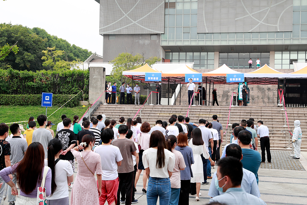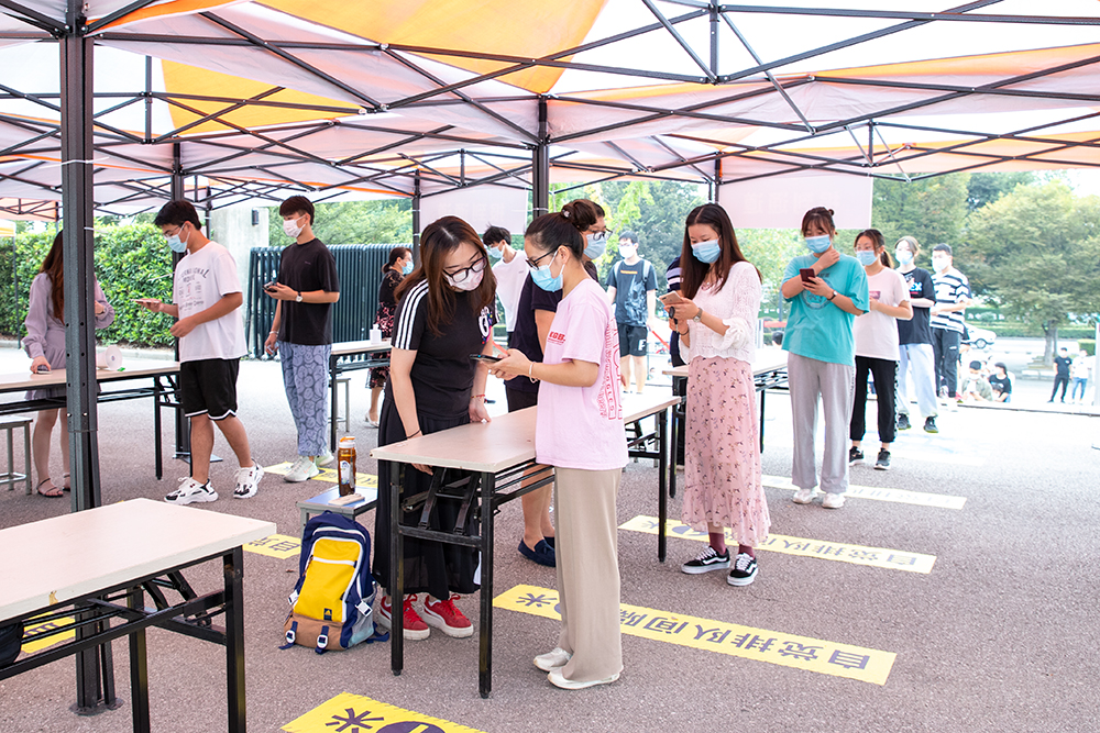 周兴元作动员讲话,要求各工作组严格按照预定方案进行,模拟返校当天行李登记、转运及消杀、报到和核酸检测采样等4类场景,实战演练返校学生报到中发生的各类突发情况,应急处置报到时学生出现发热疑似症状等问题。
