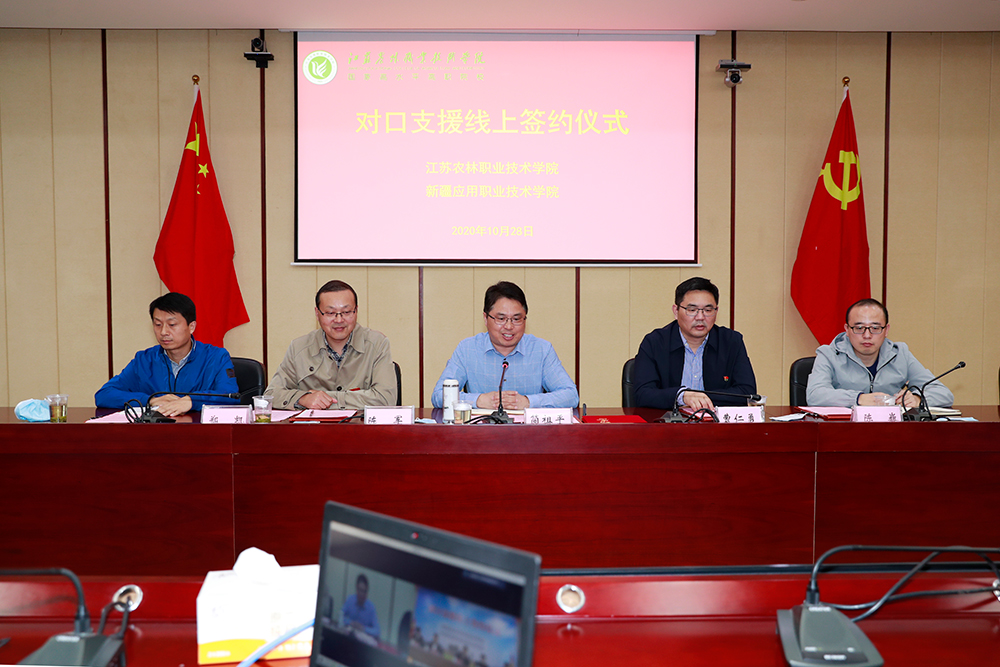 10月28日下午,永利官网与新疆应用职业技术学院通过网络签订了对口支援协议及捐赠电脑协议。新疆伊犁州政协副主席、新疆应用职业技术学院党委书记周立新,学院党委副书记、院长简祖平,党委副书记曹仁勇出席了签约仪式,学院科技开发处(校企合作处)负责人参加了签约活动。