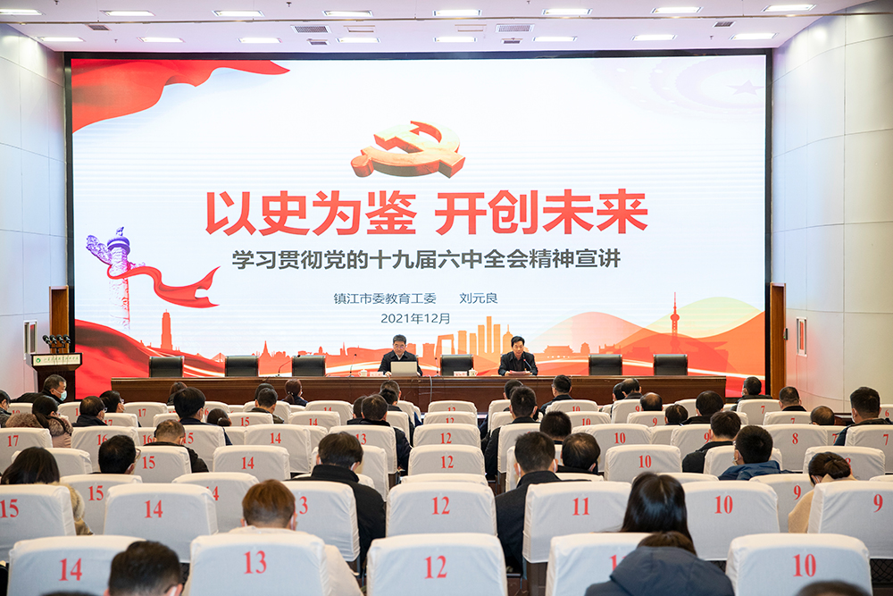 12月21日下午,学习贯彻党的十九届六中全会精神市委宣讲团宣讲报告会在学院图书馆报告厅举办,市委宣讲团成员、镇江市委教育工委书记、教育局党委书记、局长刘元良作宣讲报告。学院党政领导班子、党委理论学习中心组成员、中层干部、支部书记、师生党员代表和民主党派代表现场聆听了宣讲。学院党委书记巫建华主持报告会。