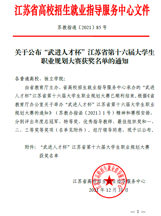 大学生职业规划大赛由江苏省教育厅主办、省高校招生就业指导服务中心承办,是全省大学生职业规划的最高赛事。旨在全面普及大学生职业规划知识,传播生涯成长理念,提高大学生的创新能力、实践能力和就业创业能力。大赛分为学校初赛、省级复赛和全省总决赛三个阶段。从4月赛事启动以来,历时八个多月,吸引了来自省内137所院校的25.62万余名学生参赛,全省高校共推荐429名参赛选手参加省级复赛,最终62所高校的104名选手晋级总决赛。