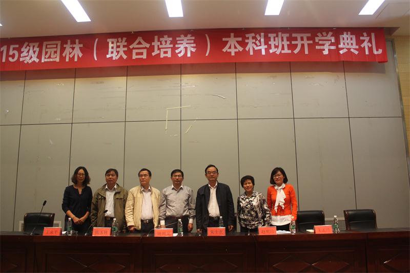 10月15日下午,2015级园林(联合培养)本科班开学典礼在研发楼报告厅举行。学院副院长周兴元、金陵科技学院园艺分院院长朱士农、党总支书记陈玉林等领导出席典礼,永利官网教务处、学生工作处、风景园林系主要负责人、2015级园林(联合培养)班48名新生及班主任参加了典礼。