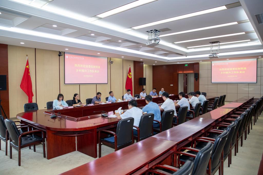 8月18日下午,省委驻射阳县乡村振兴工作队队长、县委常委、副县长王胜一行来永利官网调研乡村振兴工作。学院党委副书记、院长潘永圣,党委副书记曹仁勇,党委委员、副院长周兴元出席调研活动,机电工程学院、科技处、组织人事处、继续教育学院等部门负责同志参加了调研座谈。