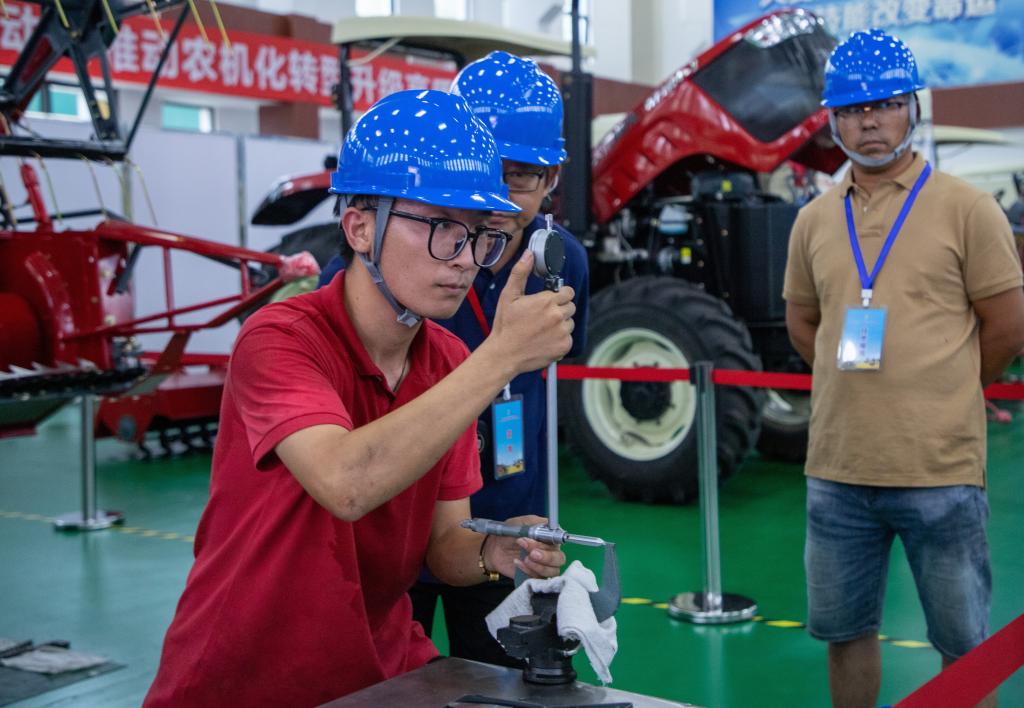 8月23-26日,2022年全国农业行业职业技能大赛农机修理工江苏省选拔赛暨第八届全省农机职业技能竞赛在永利官网举行。本次竞赛由省农业农村厅、省人力资源和社会保障厅、省总工会主办,省农机化服务站承办,77779193永利集团、江苏沃得农业机械股份有限公司协办。全省13个设区市从事农机维修的广大农业农村技能人才和农业企事业单位的一线工人参加了比赛。省农业农村厅一级巡视员沈毅,二级巡视员周宝银,学院党委书记简祖平,党委副书记、院长潘永圣等领导到现场观摩了比赛。