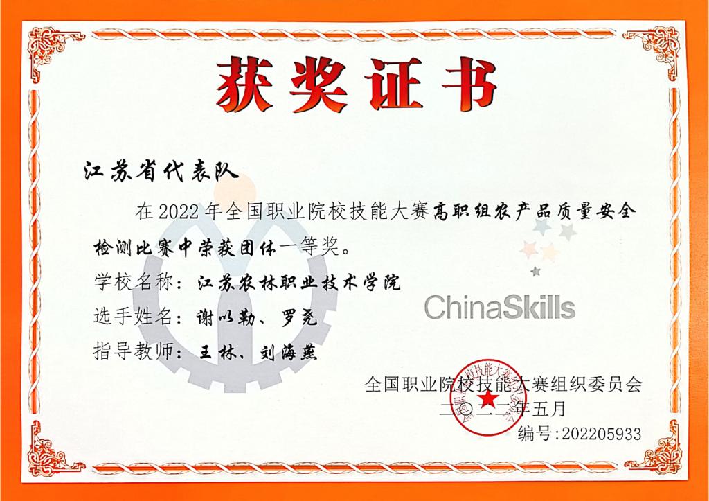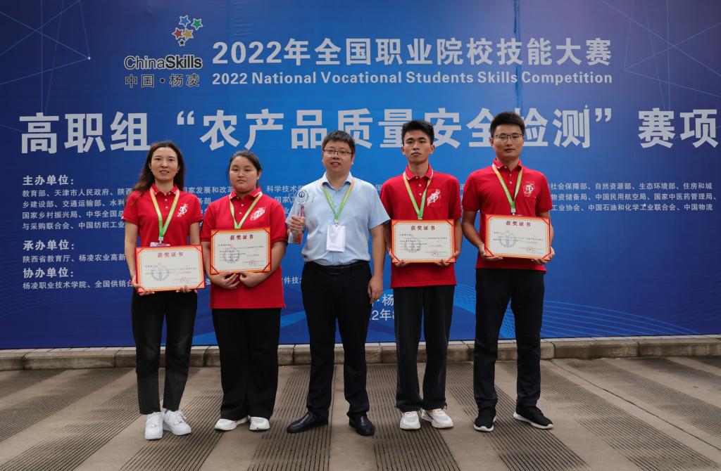 8月22-27日,2022年全国职业院校技能大赛“农产品质量安全检测”赛项在陕西杨凌职业技术学院举行,共有来自全国28个省份的53支代表队同场竞技。茶与食品科技学院的谢以勒和罗尧两位同学荣获大赛团体一等奖,刘海燕、王林两位老师分别获“优秀指导教师”称号。