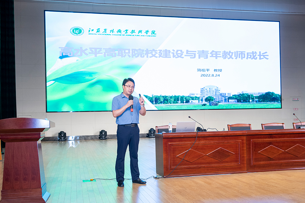 学院党委副书记、院长潘永圣作了题为《准确把握职教发展机遇与挑战,在建设一流高职院校中成就自我》的讲座。他希望广大青年教师要集众智、聚合力、提质效、干实事,为服务乡村振兴、建设美好农林努力奋斗。