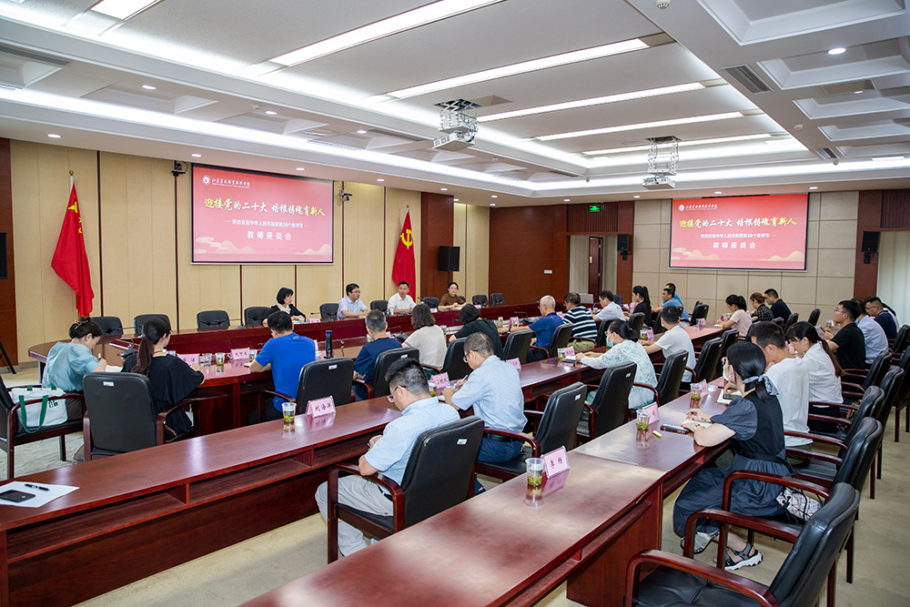 百年大计、教育为本。教育大计,教师为本。第38个教师节即将来临之际,9月6日下午,学院在综合楼九楼会议室召开“迎接党的二十大 培根铸魂育新人”教师座谈会。学院党委书记简祖平,党委副书记、院长潘永圣,有关职能部门负责人,与来自全院的老中青教师代表一起共庆教师节,共话学院发展,共谋学院未来。座谈会由潘永圣院长主持。