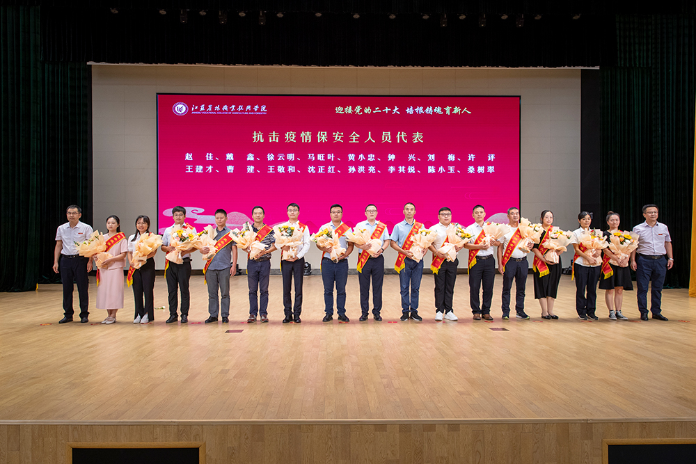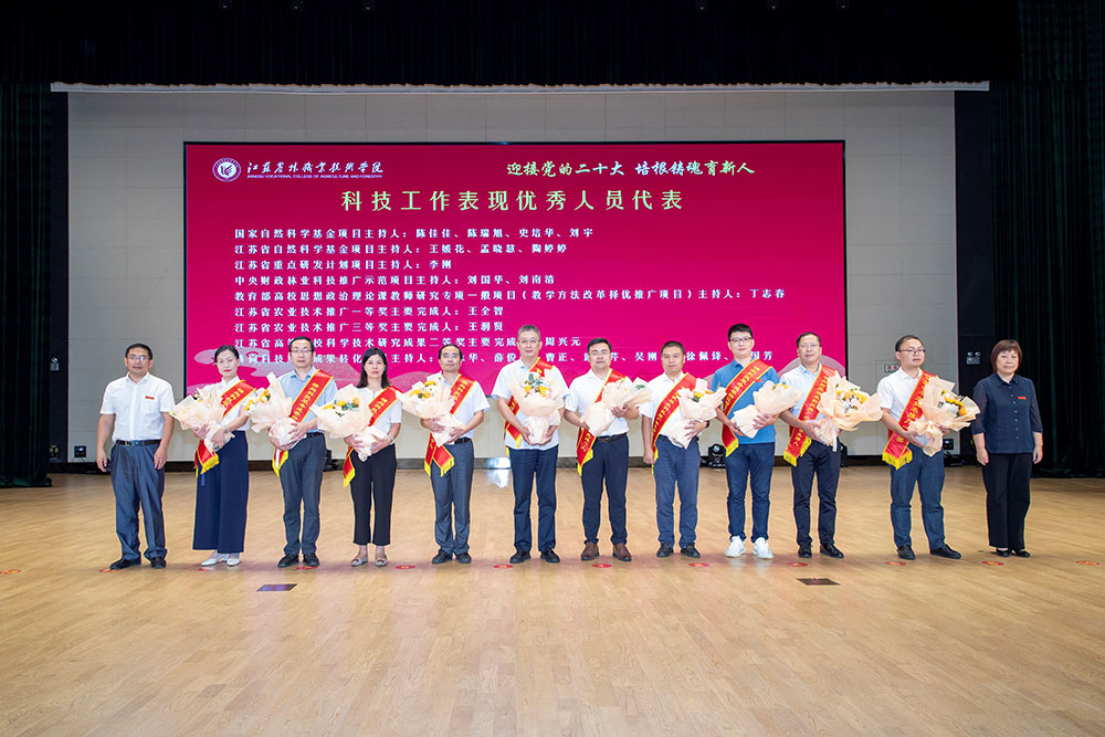 党委副书记、院长潘永圣宣读了江苏省农业农村厅发来的教师节慰问信,并向全体教职员工送上节日祝福。会上,院领导为近两年人才工程奖项获得者代表、教育教学领域省级以上重要获奖人员代表、科技工作表现优秀人员代表、行政管理后勤服务岗位人员获得表彰人员代表和抗击疫情保安全人员代表送上鲜花,并为荣休教师颁发荣誉证书。获奖教师代表高菊玲、荣休教师代表陈啸寅、新教师代表郑香容作了发言。