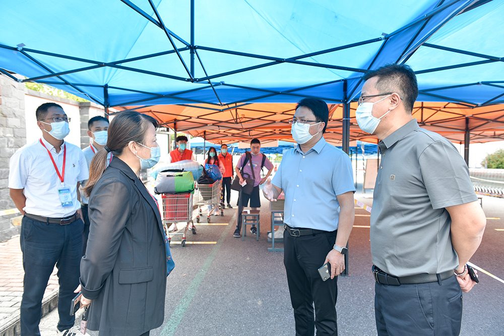 秋风送爽,丹桂飘香。9月13日、20日、21日,永利官网相继迎来了全国24个省市、自治区3600余名2022级新生。学院党委书记简祖平,党委副书记、院长潘永圣,党委委员、副院长毕德全及相关部门负责人来到茅山校区报到现场和生活区,看望新生,慰问迎新工作一线的工作人员。
