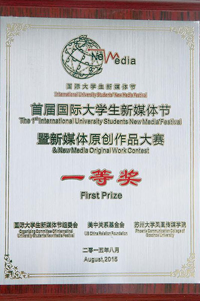 8月16-17日,由美中关系基金会策划,苏州大学传媒学院、东吴智库和美国汉纳国际传媒集团主办的首届国际大学生新媒体节暨原创新媒体大赛在苏州大学举行。本次比赛吸引了苏州大学、中国传媒大学、暨南大学、山西传媒学院等全国数十家高校及部分国外高校参赛,永利官网信息工程系耿飞、郑道娟、陈小燕等老师带领的阿尔法传媒工作室团队共有4个作品入围决赛,其中《爱 不忘记》以第一名的成绩获一等奖,并获奖金1万元,其余三个作品均获得优秀奖。