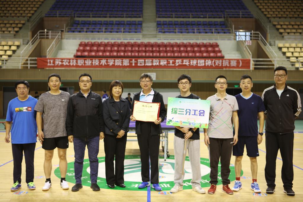 10月15—16日,由学院工会主办,体育部、后勤基建处协办的第十四届教职工乒乓球团体(对抗)赛经过两天的激烈角逐,圆满落下帷幕。获得前六名的是:综四、综三、牧医、茶食、农艺、经文代表队。学院党委书记简祖平,副院长贾君等领导莅临比赛现场并为获奖代表队颁奖。