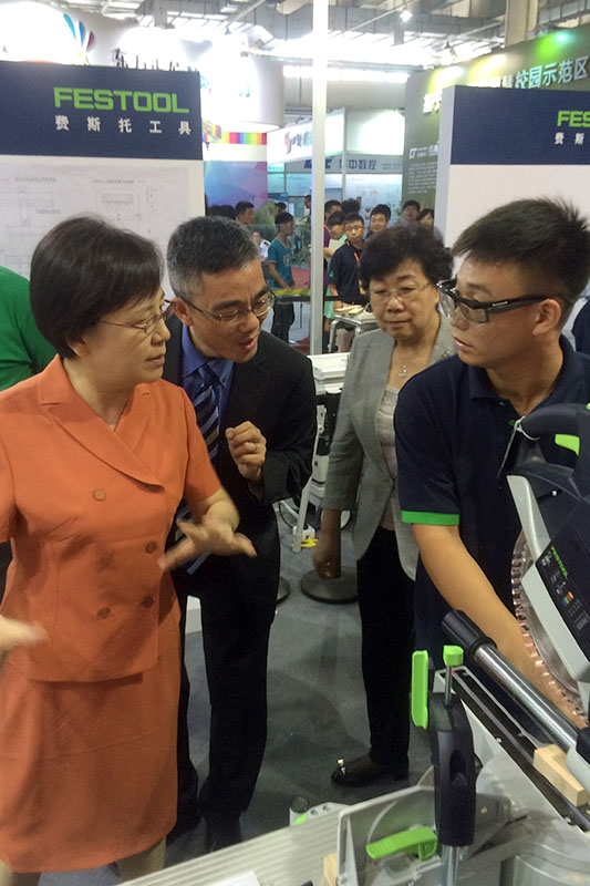 表演赛期间,教育部副部长鲁昕及职业教育与成人教育司相关领导观摩了比赛,鲁昕部长在现场与永利官网参赛学生亲切交谈,仔细询问作品制作情况,对永利官网学生加工制作的包括鲁班锁、木质钢笔、红木家具模型等木质展品给予了充分的肯定。