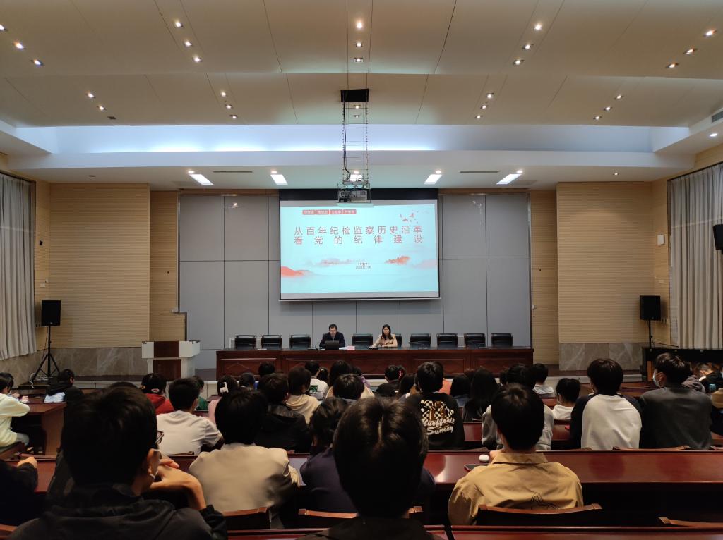 周书记从纪检监察机构的历史沿革、纪律建设的内涵和做遵章守纪的新时代青年三个方面进行了详细地讲解,指出青年要认真学习党史,从中汲取坚定的信念,树立远大的理想,积极进取,为社会和国家发展奉献才智和力量。
