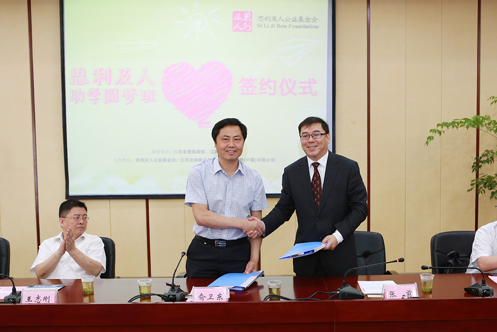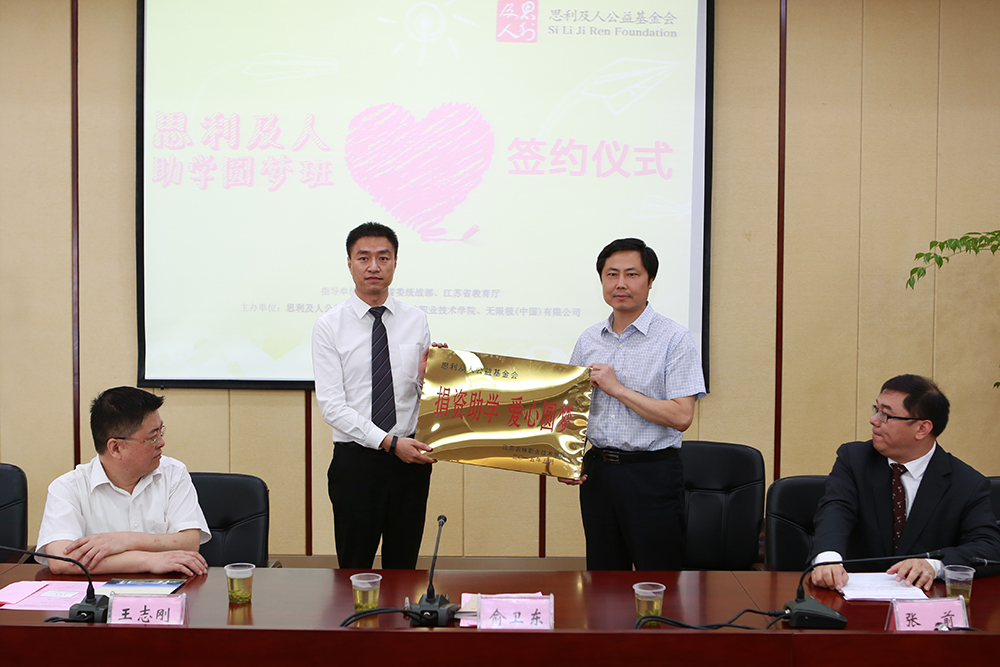 5月22日,由思利及人公益基金会捐资设立的“思利及人助学圆梦项目”签约仪式在永利官网顺利举行。此次活动得到了江苏省委统战部、江苏省教育厅的大力支持。学院党委书记俞卫东、中共江苏省委统战部经济处处长王志刚、江苏省教育厅学生资助中心主任陈虎、无限极(中国)有限公司媒体事务总监张前、外事总监许大晟、无限极(中国)有限公司江苏分公司负责人姜克等出席签约仪式。签约仪式由学院副院长简祖平主持。 俞卫东书记代表学院在欢迎辞中简要介绍了学院的办学情况和园林技术专业特色和学生的就业情况。陈虎主任结合江苏省学生资助整体情况对永利官网的办学特色和学生资助工作予以了肯定。张前总监介绍了思利及人公益基金的捐赠理念,并表示要帮助更多的年轻人,让他们自力更生、实现职业梦想。 俞卫东书记代表学院与无限极(中国)有限公司负责人签署助学协议并赠送“捐资助学 爱心圆梦”铜牌。随后,与会领导还共同为梦想邀请函揭牌。