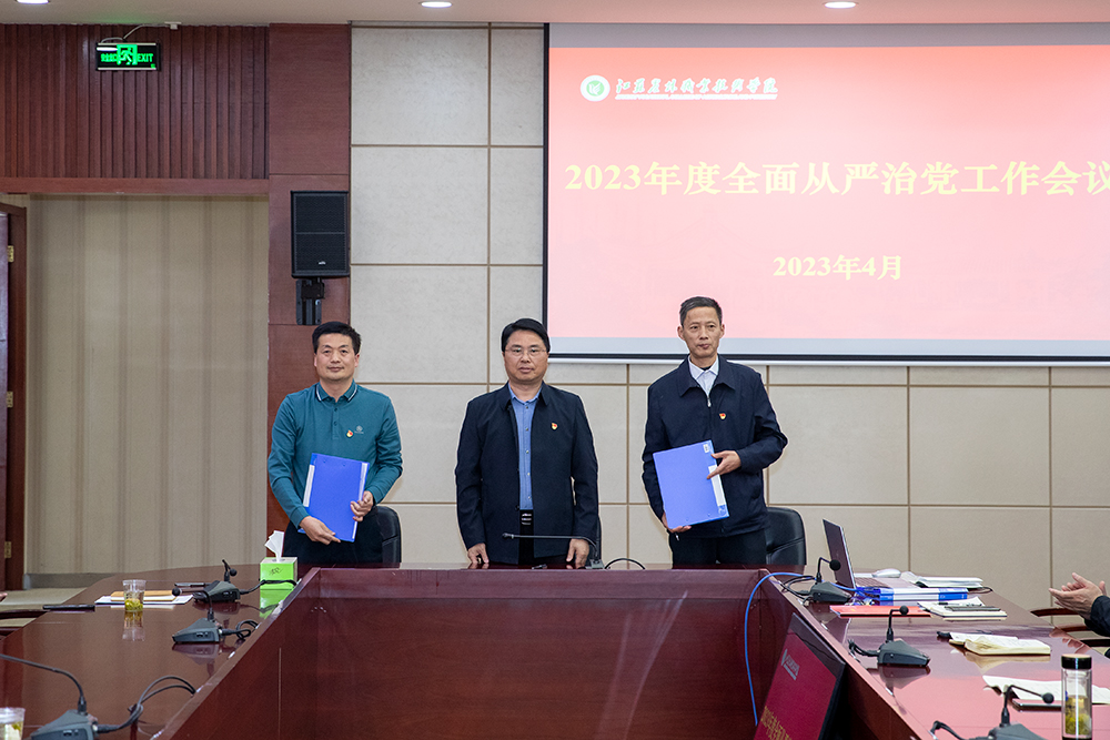 会上,简祖平与二级学院、行政部门党政负责人代表签订2023年度党风廉政建设责任书,并要求各二级部门认真对照责任书内容,履职尽责,实干担当,扎实推进全面从严治党工作。