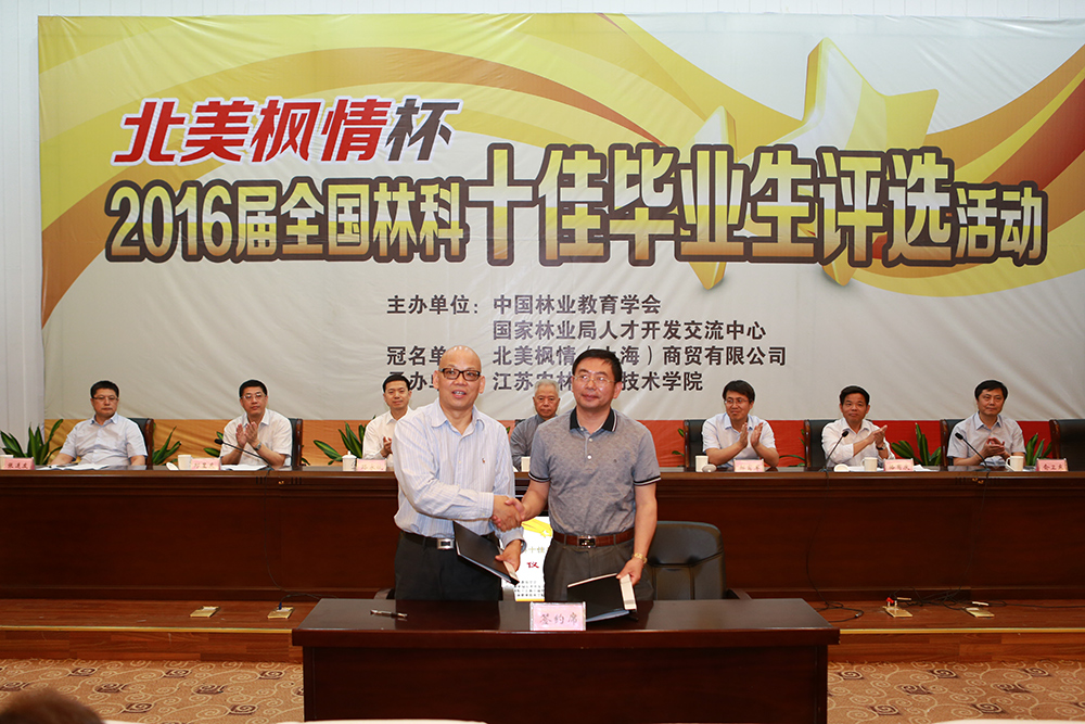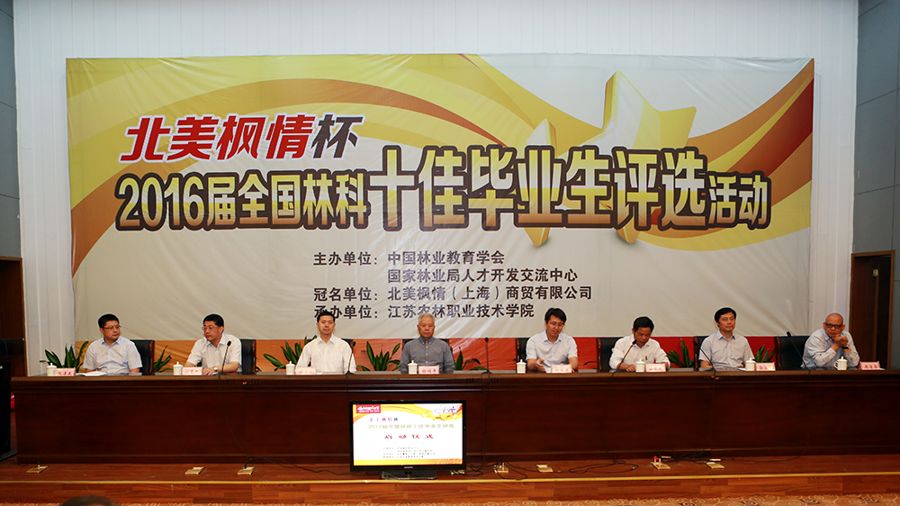 5月21日,2016届全国林科十佳毕业生评选活动启动仪式在永利官网图书馆报告厅举行。本次评选活动由中国林业教育学会和国家林业局人才开发交流中心共同举办,永利官网承办。中国林业教育学会理事长杨继平,国家林业局人事司副司长郝育军,中国林业教育学会秘书长、北京林业大学副校长骆有庆,国家林业局人才开发交流中心副主任路永斌,江苏省林业局纪委书记邱昱东,学院党委书记俞卫东,中国绿色时报社常务副社长张连友,北美枫情(上海)商贸有限公司总经理周清华及部分参评院校、媒体代表、学生代表300多人参加了启动仪式。