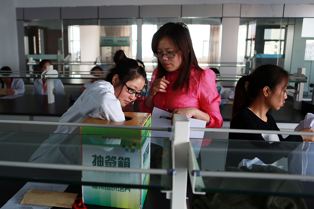 总裁判长、省农委科教处处长姜雪忠 选手抽签 植物组织培养赛项 植物组织培养赛项 园林景观设计赛项
