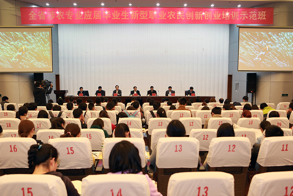 4月14日,全省涉农专业应届毕业生新型职业农民创新创业培训示范班在永利官网隆重开班。省农委主任吴沛良、省教育厅副厅长丁晓昌、学院党委书记俞卫东、院长巫建华等领导出席开班典礼。典礼由省农委副主任蔡恒主持。 吴沛良主任在讲话中结合江苏农业发展的现状,从加快培育新型职业农民是现代农业发展的必然要求、大学生到农村创业面临的历史机遇两个方面,为广大学员上了生动的一课。他希望毕业生们能够充分运用自己的聪明才智和专业知识,投身农业建设,成为江苏现代农业的领头人、农村发展的引路人、农民致富的带头人。 丁晓昌副厅长分析了江苏涉农高校的发展情况,指出针对涉农专业的毕业生,省教育厅将从落实政策措施、拓宽就业渠道、强化就业创业指导等方面提供支持。他要求广大毕业生认真学习、增强信心、开拓进取,撑起现代农业发展的一片天。 此次培训由省农委和省教育厅联合主办,为期三天,旨在提升涉农专业毕业生的创新创业能力,激发其投身农业的热情。来自全省6所涉农院校的186名有意向回乡创业或从事涉农相关专业的应届毕业生聚集一堂,接受现代农业发展、农业政策法规、农业科技与创新、农业产业体等11个方面知识的学习。