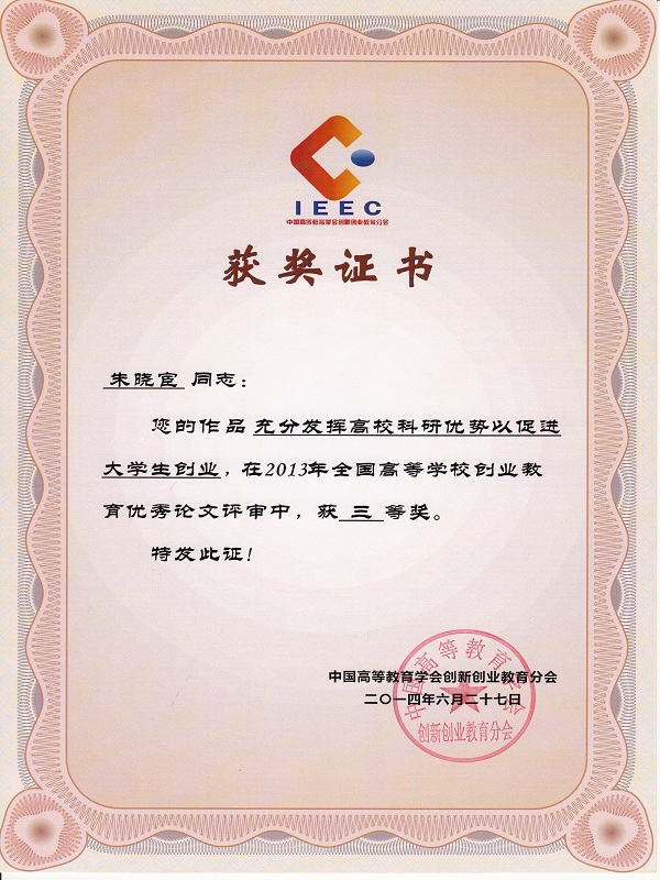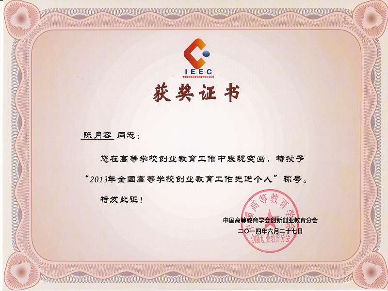6月27日,中国高等教育学会创新创业教育分会2014年工作年会在西南交大犀浦校区图书馆二号报告厅隆重召开。永利官网在大会上被推选为中国高等教育学会创新创业教育分会第二届理事单位,喜获“全国高等学校创业教育研究与实践先进单位”荣誉称号,陈月容老师荣获“全国高等学校创业教育先进个人”,朱晓宦老师的论文《充分发挥高校科研优势以促进大学生创业》、何永鹏老师的论文《高职院创业教育体系优化的研究—基于创业胜任力角度的思考》均获得优秀论文评选三等奖。