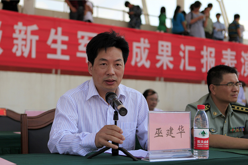最后,巫建华院长发表了热情洋溢的讲话。他首先向担任此次军训任务的73667部队的教官们表示崇高的敬意和衷心的感谢。他希望同学们进一步巩固军训成果,将军训中继承的优良传统和养成的良好习惯用到新的学习生活中去,始终坚持和继续培养坚韧不拔的意志、吃苦耐劳的品质、团结协作的精神和令行禁止的组织纪律观念,积极参与优良学风建设与新生教育工程,培养吃苦耐劳、勇于拼搏的良好作风,为把自己锻炼成为全面发展的高素质技能型人才作出新的更大的努力!