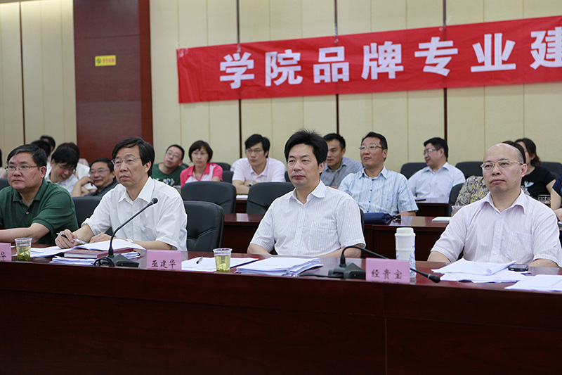 来自江苏省教育厅和兄弟院校的相关专家、巫建华院长等听取专业建设情况汇报