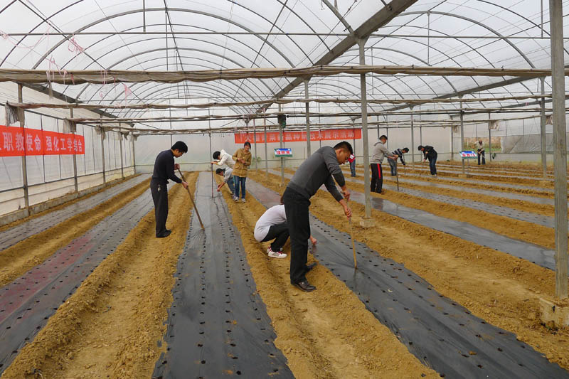 初冬的农博园阳光和煦,农艺系蔬菜大棚内生机盎然。巫院长身体力行,率先垂范,与农艺系师生一起种植蔬菜试验示范田,干得热火朝天。本次试验示范田引进的新品种所采用的种植技术是由永利官网新聘任的客座教授——江苏省蔬菜研究所的羊杏平研究员提供的膜下滴灌技术,这种技术可以确保蔬菜苗成活率高、品质好。巫院长要求农艺系教师不仅要种好、管好试验示范田,而且要连同其他三新技术一道推广到周边地区,带动农户增产增收。巫院长还要求农艺系要以此次活动为契机,充分调动教师下基地的积极性,积聚人气,不断提升基地的教学、生产、科研、示范、休闲观光等综合功能。