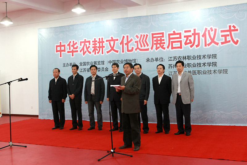 蔡恒副主任代表省农委作了重要讲话,他说,江苏是一个农业大省,也是中国农业的发祥地之一,江苏的农业文化遗产领域广阔、类型全面、内容丰富,形成了独具特色的江南农耕文化。本次“中华农耕文化展”在我省农业高校进行巡展,不仅有助于弘扬中华农耕文明的精髓,展示我国劳动人民的勤劳和智慧,也有利于促进中华农耕文化的保护与传承,促进校园文化建设和繁荣,推动农业科技的创新与发展。对促进和加快农业高校的校园文化建设,提升文化档位有积极而深远的意义,对推进江苏农业文化建设,促进江苏农业文化的保护、挖掘和传承具有重要影响。
